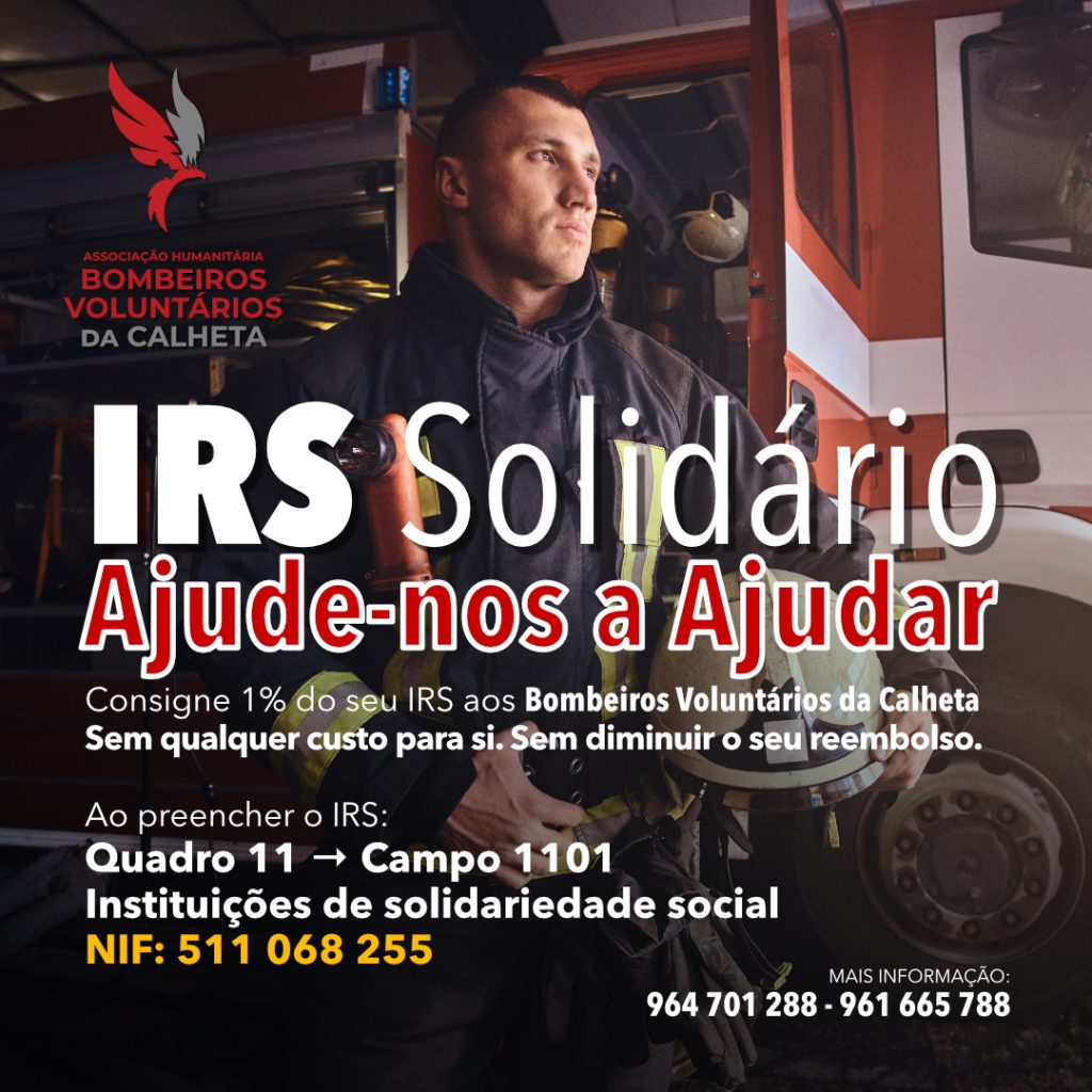 Ao preencher a sua declaração de IRS, pode consignar 1% do seu imposto aos Bombeiros Voluntários da Calheta, contribuindo diretamente para apoiar o trabalho de quem está sempre pronto a ajudar a nossa comunidade.